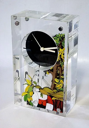 Acrylic glass clock by Aldo Lanciano, 1980s
