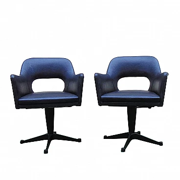 Pair of 60s armchairs, swivel and with manual lock. Upholstery in imitation leather and structure in painted cast iron.