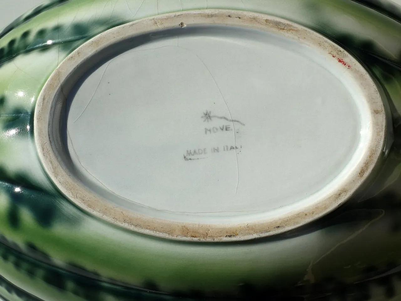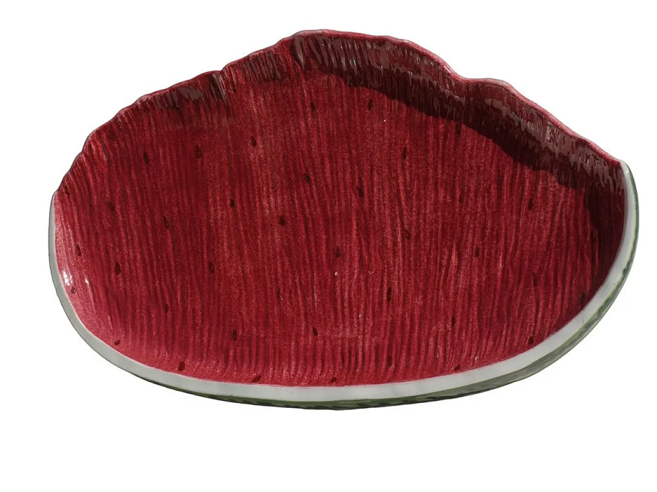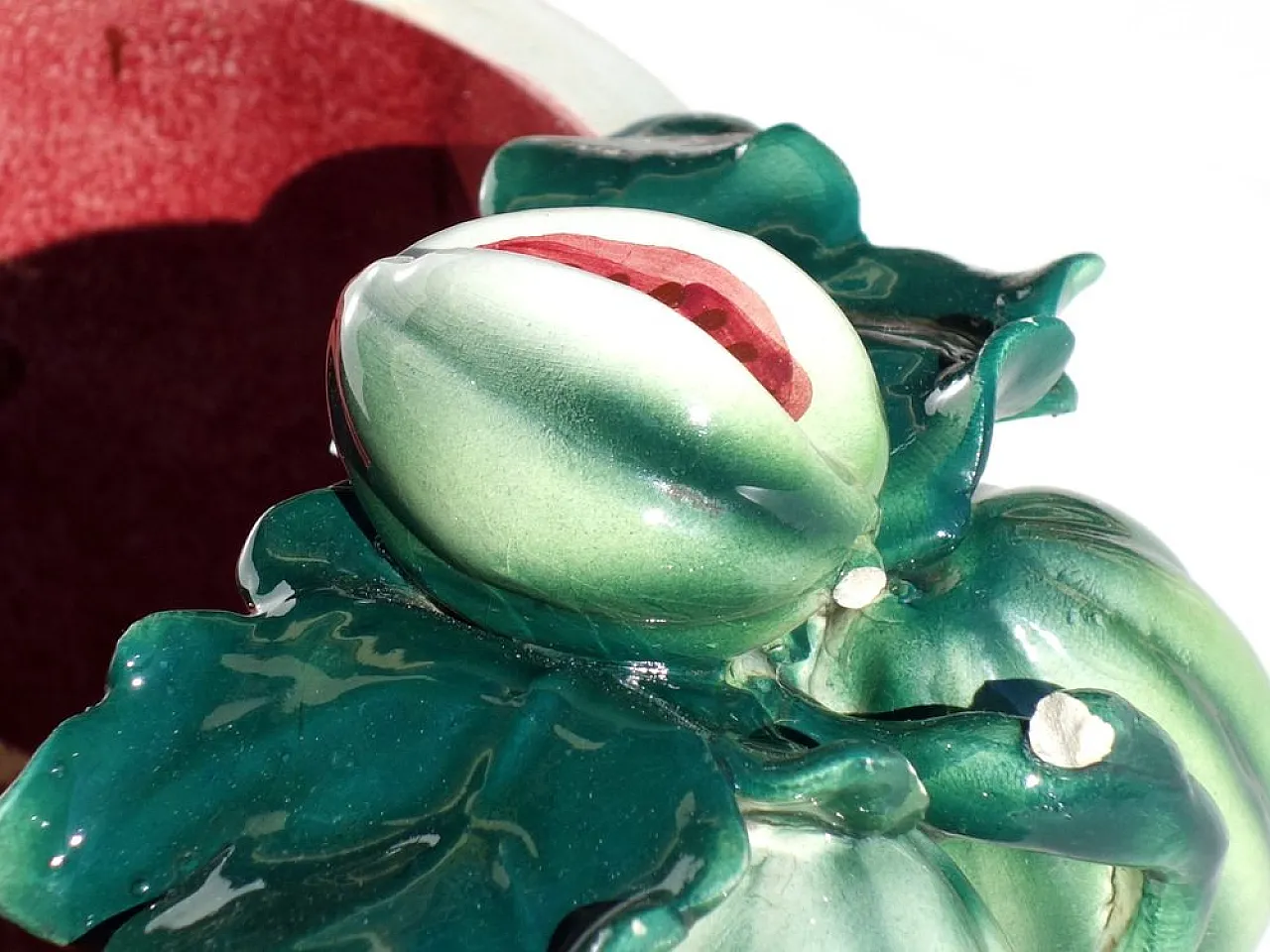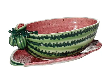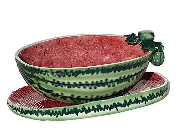Watermelon bowl with ceramic airbrush plate, 1950s