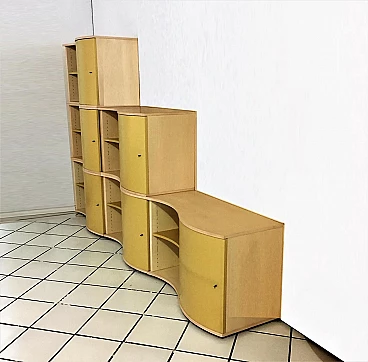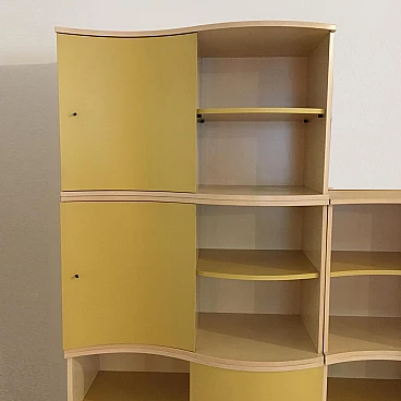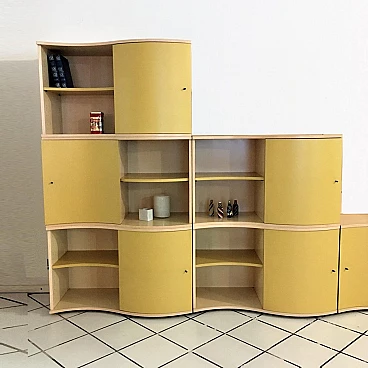 Modular bookcase maple, yellow satin lacquered doors