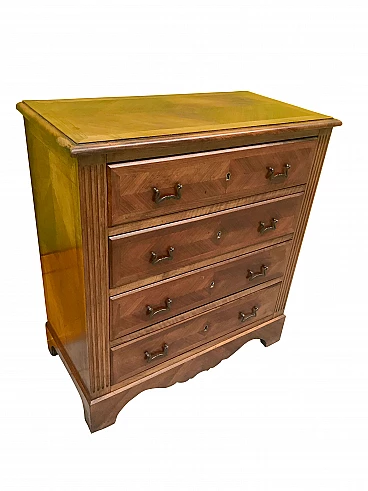 Small French chest of drawerss from the end of the 19th century, with the same "design", on the 4 drawers, sides, and top in rosewood, with the interior in Slavonian oak. The 4 drawers have all the original handles, nozzles and locks. The structure is healthy, the paving, although not missing, is to be lowered on a small part of the top. For the rest need, if desired, a polishing.