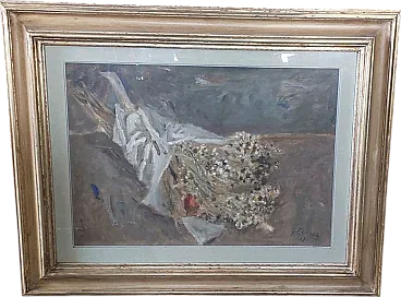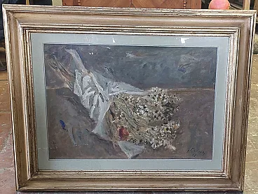 Still Life by Giuseppe Manfredi, oil on cardboard, 20th century