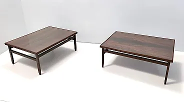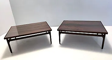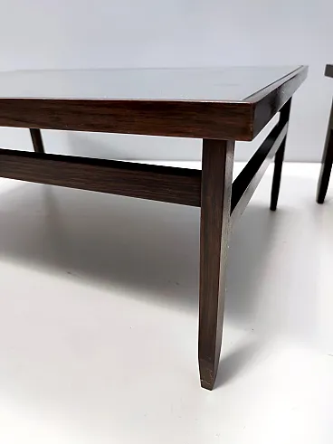 Made in Italy, 1950s. These rectangular coffee tables are made in ebonized walnut and glass. They are both quite solid and sturdy. They are vintage, therefore they might show slight traces of use, but they can be considered as in excellent original condition and ready to become a piece in a home. Measures: Width: 88 cm Depth: 65 cm Height: 35 cm. Order it now! We sell the best quality pieces and we offer an amazing service: if it's not during night time, we answer within 2 hours and we absolutely love to follow every step of the purchase and even after. As matter of fact we really appreciate our customers’ feedback and when we receive pictures of our pieces in their new homes. We assist you during the process and answer all your questions. In addition to this, we always review the pieces before shipping, so that you receive the goods at its very best. We provide the best possible quotes and professionally and carefully pack the items. Insurance is included. And if there is any issue, it is our mission to make so you don't have to worry: we will always be there for you to assist in any way possible.