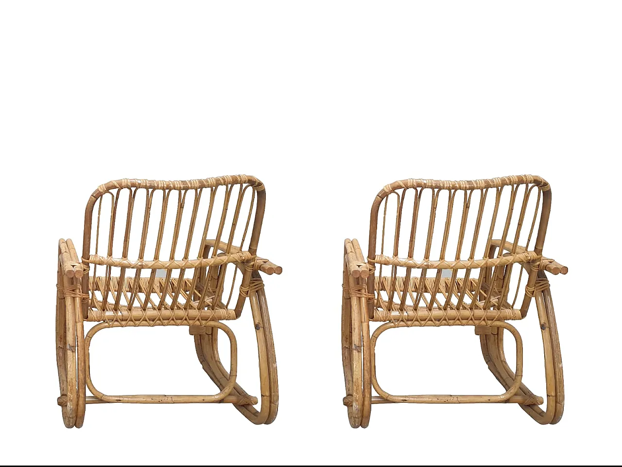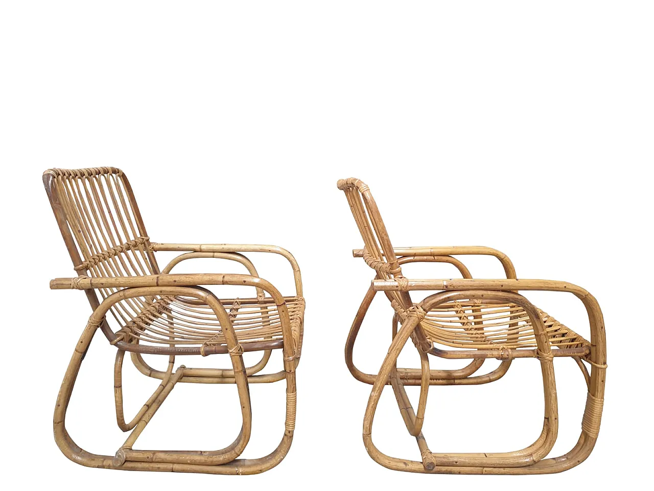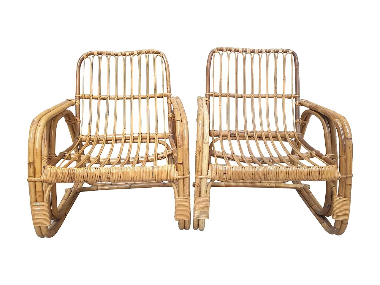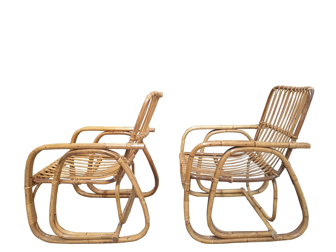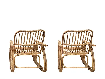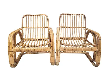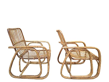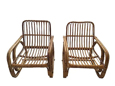 Southern Southern Bamboo Vivai sofa, armchairs attributed by many to Lio Carminati, but without signature, 60s, perfect condition. Armchair: L 56, P 56, H 85 cm. Sofa: L 195, P 67, H 84 cm.