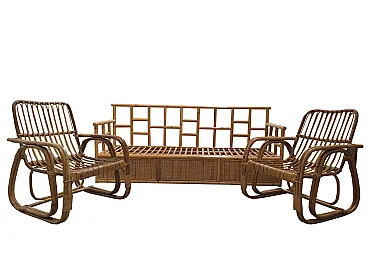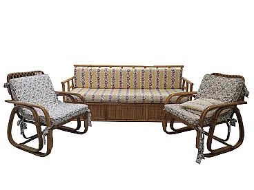 Sofa and two bamboo armchairs, southern nurseries, Italy, 1960s 1