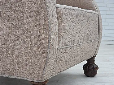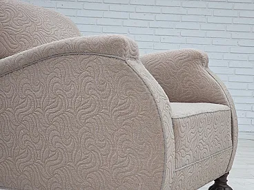 Danish art deco armchair, beige furniture wool, oak wood, 1950s