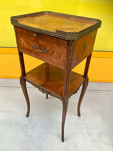 Napoleon III style TABLE paved and threaded in rosewood, 19th century. Rich of Bronzes present not only on the 4 sides, on the edges of the table tops and on the feet, but also on all the edges of the legs. Beyond a drawer, the facade is embellished with a drawer that comes out. The state of conservation is excellent.