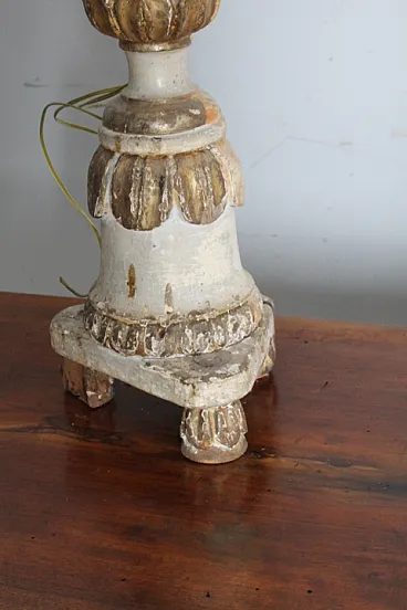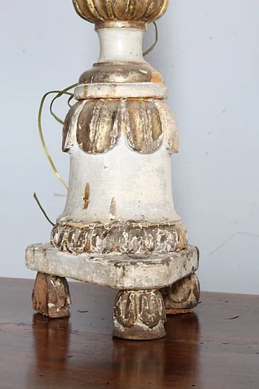 Wooden candlestick painted gold lacquered and ivory, 18th century