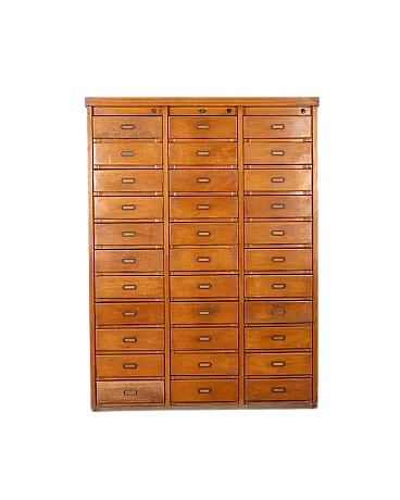 Large wooden filing cabinet with 33 drawers with original locks and keys, design Antonino Gorgone, 1950s.