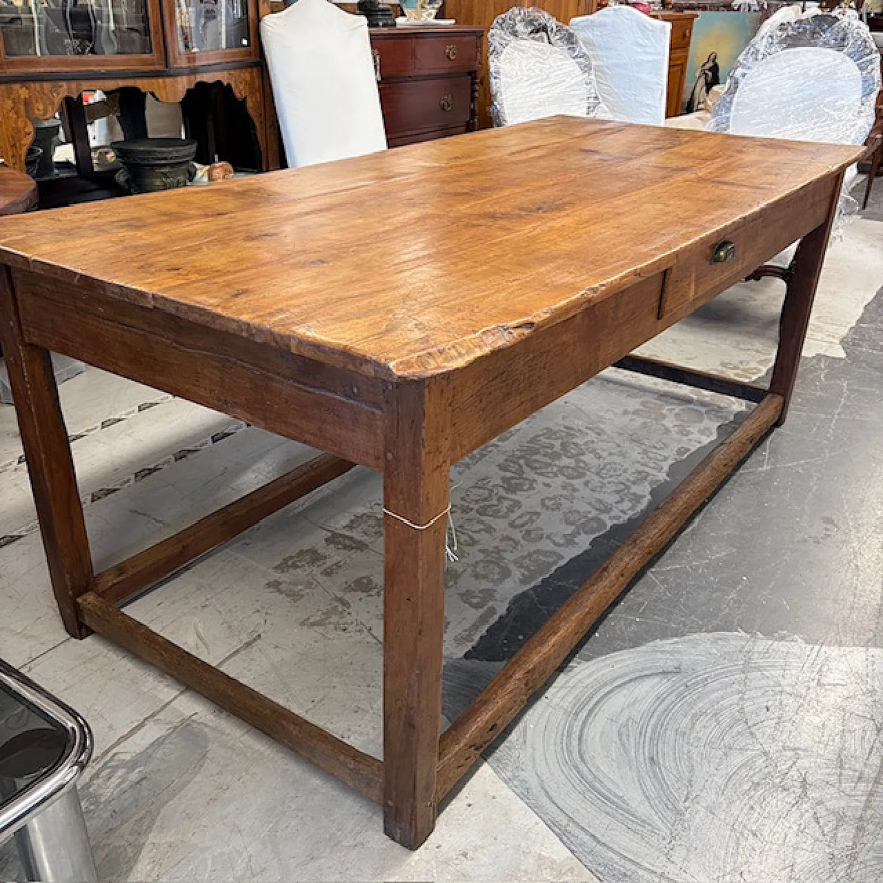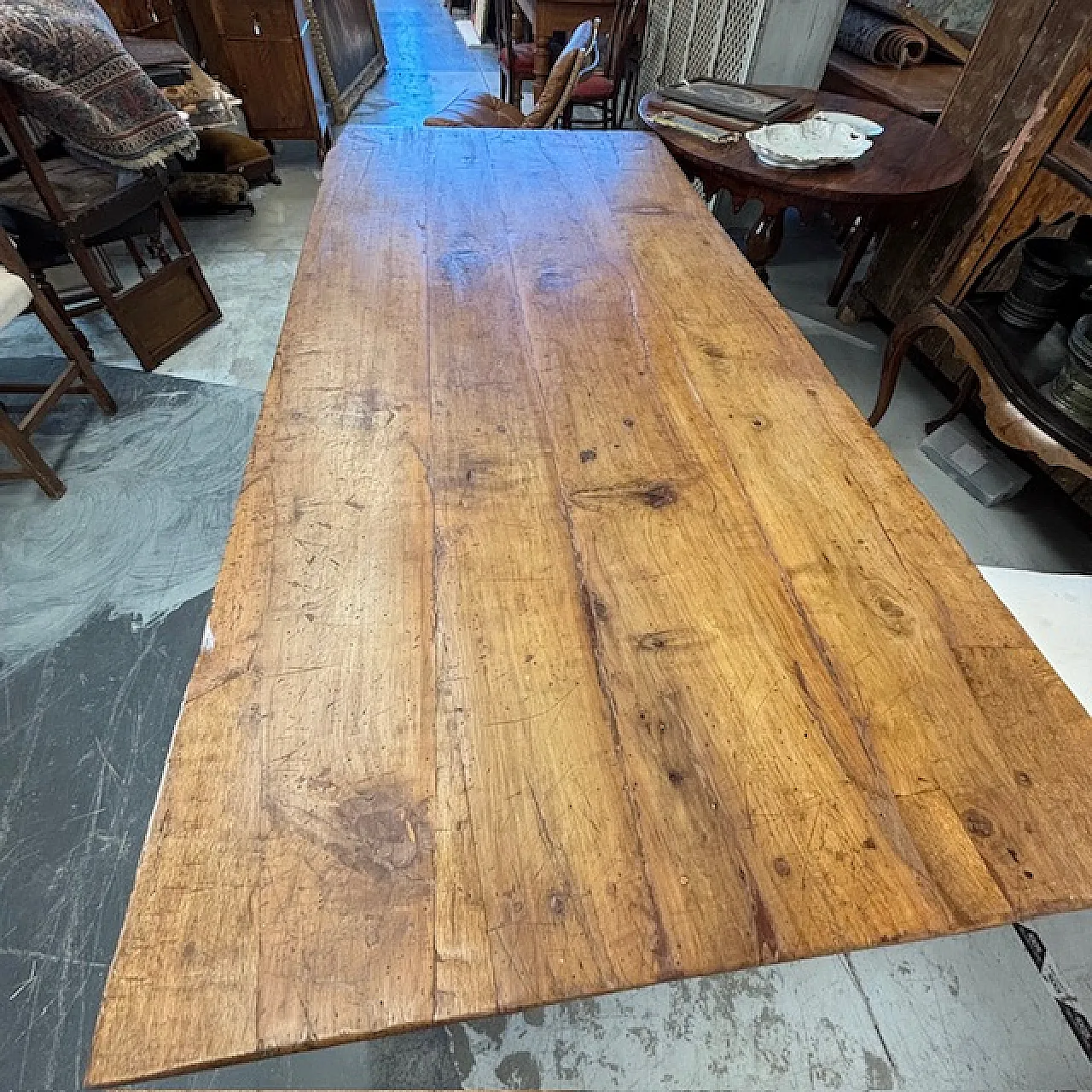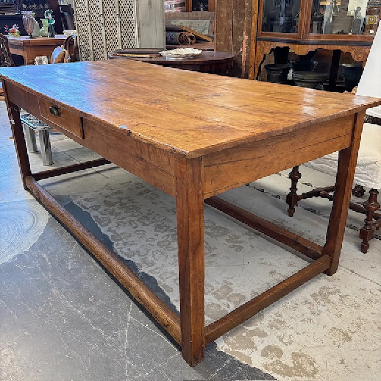 Ancient and beautiful table - in solid cherry wood - from Tuscan work first 800. Mis 200 x 94. h 80 restored. Very sought after object with a large central drawer. And legs in the legs. Very wide. Ideal as exposure shops or private home use.