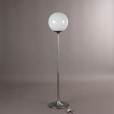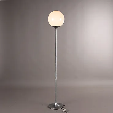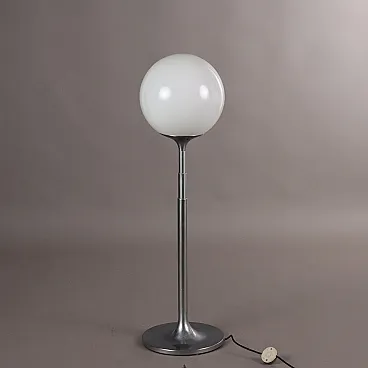 Height-adjustable telescopic lamp in chromed metal and white glass.