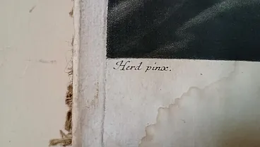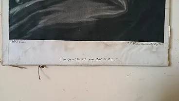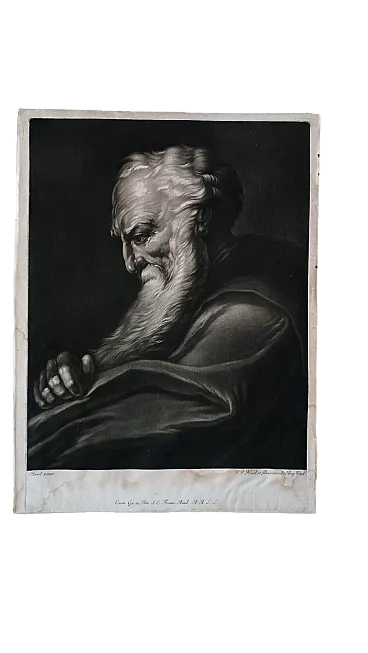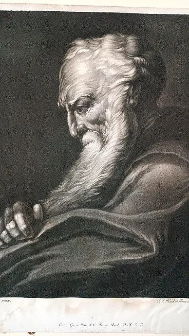 Beautiful engraving on paper shown on canvas of the time. XVIII century. Virile portrait.
