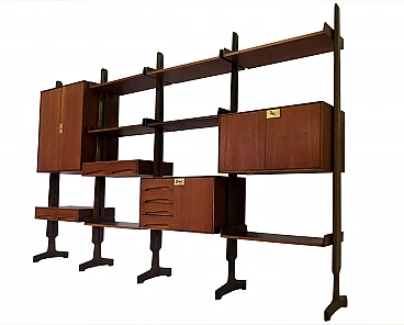 Self-supporting bookcase in Italian teak wood with four modules by Vittorio Dassi, 1950s