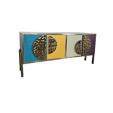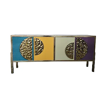 Sideboard four colored glass doors, 90s