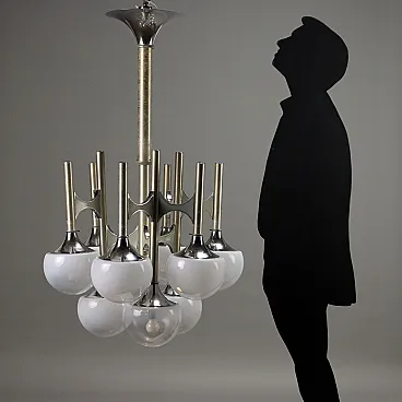 Nine-light lamp in steel and glass, late 20th century