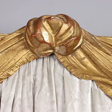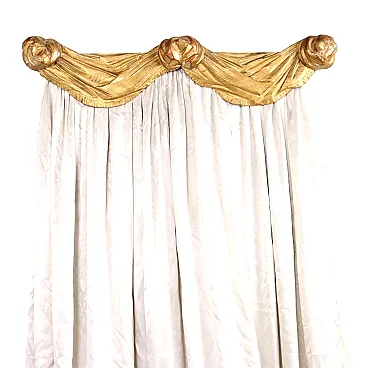 Carved and gilded fir wood curtain rod, for double bed headboard. Italy, mid-19th century.