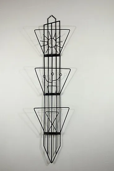 Black Iron wall magazine rack Mid-Century Modern, 1950s