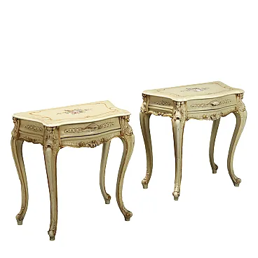 Pair of Venetian Baroque style bedside tables, carved, lacquered and painted beech. Material loss. Italy, 20th century.