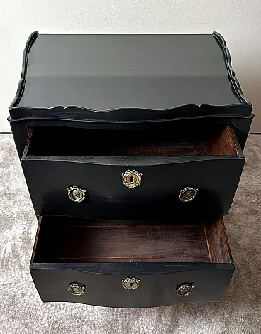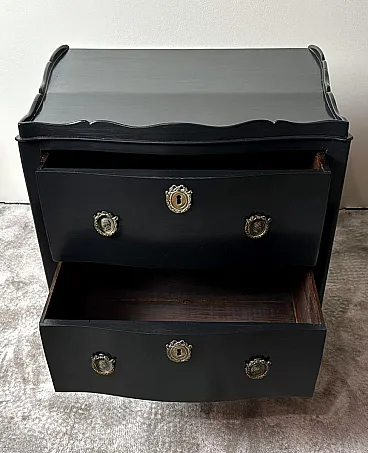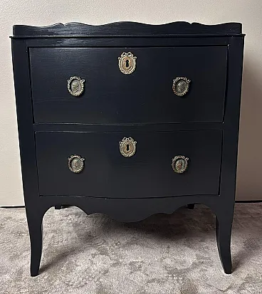 We kindly invite you to read the entire description, as we strive to provide you with detailed technical and historical information to ensure the authenticity of our pieces. This elegant and refined French chest of drawers features two spacious and deep drawers. The handles, made of cast bronze, are finely crafted with intricate details. To maintain height symmetry, each drawer is adorned with a decorative faux keyhole. The top is embellished with a delicately contoured edge, while the slightly cabriole legs seamlessly integrate into the structure. Thanks to its well-balanced proportions, this chest of drawers can also be used as a large bedside table. Crafted in the Neoclassical Louis XV style between 1760 and 1764 by an artisan workshop in Liffon-le-Grand, a town in the Vosges department of the Grand Est region of France, an area renowned for its woodworking tradition. Although it was made during the reign of Louis XV, from 1750 until the king’s death, a new furniture style began to emerge, known in France as Louis XVI and throughout Europe as Neoclassical. This style drew inspiration from classical antiquity, emphasizing harmony and proportion, favoring straight lines, and reducing ornamentation. The refined and orderly Louis XVI Neoclassical style was officially recognized even before the king’s coronation in 1774. Its balanced proportions, symmetry, and ideal dimensions make this piece a valuable and versatile addition to any interior. The chest of drawers has been meticulously restored by a skilled cabinetmaker in Florence, Italy, using traditional woodworking techniques passed down through generations—an expertise that, unfortunately, is becoming increasingly rare. Thanks to this careful restoration, the piece is in excellent condition. Dimensions: • Width: 24 in (61 cm)•Depth: 18.5 in (47 cm)•Height: 28.7 in (73 cm) For all our shipments, we use special packaging materials (wooden crates, polystyrene, etc.) to ensure maximum protection and safety for our items.