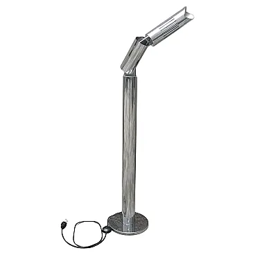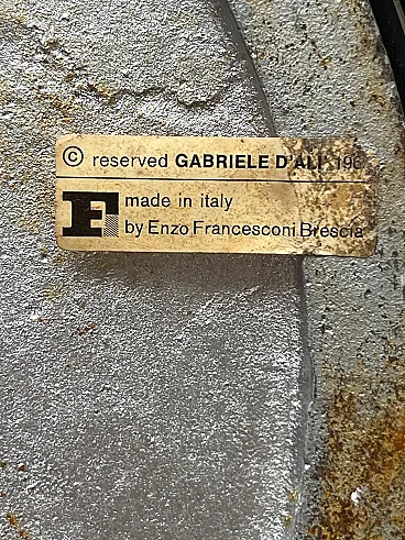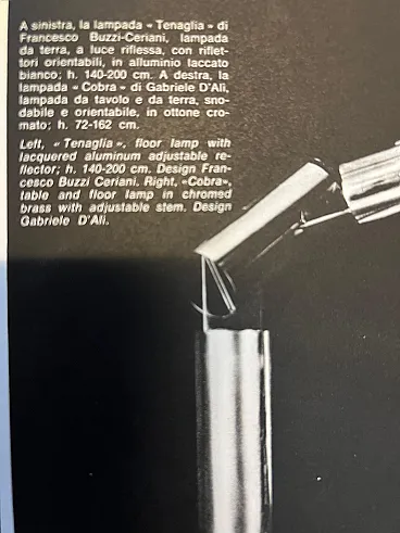 This extraordinary floor lamp, designed by Gabriele D'Ali and produced by Francesconi Brescia in 1965, is a perfect example of 1960s Italian design, combining functionality with aesthetic refinement. Made entirely of chrome-plated steel, the lamp features an innovative double-jointed mechanism that allows the diffuser's tilt to be precisely adjusted, ensuring optimal directional lighting. The light diffusion system, designed with a perforated tubular element, allows effective light dispersion, creating a sophisticated and enveloping atmosphere. The authenticity of the piece is attested by the presence of the original label under the base, bearing the production date 1965, and by the publication of the lamp in the prestigious magazine Domus, issue 487 of June 1970, confirming its historical relevance in the Italian design scene of the 20th century. Gabriele D'Ali is an Italian designer active in the second half of the twentieth century, known for his innovative approach to lighting and furniture. His creations are distinguished by the skillful use of metals and adjustable mechanisms that combine aesthetics and functionality. His works, often in limited editions, are now sought after by collectors and enthusiasts of 20th-century design. Francesconi Brescia is an Italian company specializing in the production of high-quality lighting. Active since the 1950s, its production has always combined technological research and craftsmanship, leading to the creation of iconic design pieces. Collaborations with innovative designers, such as Gabriele D'Ali, have made the brand a benchmark in the lighting industry, with a focus on functionality and formal elegance. This lamp, in excellent condition, is a unique opportunity for collectors and lovers of vintage design, combining historical value with the timeless beauty of Italian design.