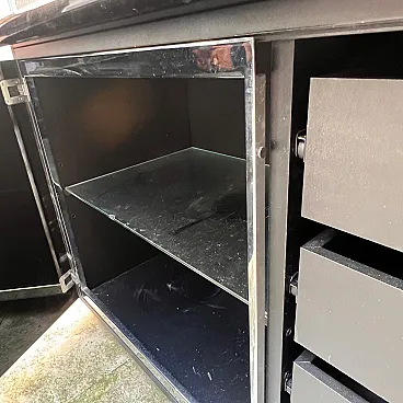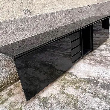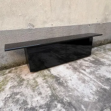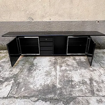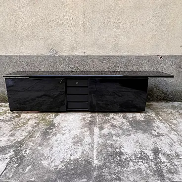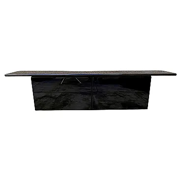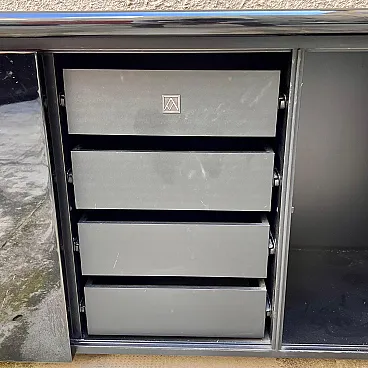 The sideboard model "Sheraton" is an icon of Italian design, the result of a collaboration between Giotto Stoppino and Lodovico Acerbis in 1977. This piece represents a perfect balance between elegant form and innovative functionality, fully reflecting the role of Stoppino and Acerbis as protagonists of Italian design. Featuring a black lacquered wood frame with a high-gloss finish, the "Sheraton" features two large sliding doors that, thanks to a side-sliding opening system, reveal three interior compartments with glass shelves and four central drawers. This revolutionary mechanism provides complete and easy access to storage space while maintaining a clean, streamlined aesthetic. The dimensions of the sideboard are 70 cm in height, 280 cm in width and 49 cm in depth, providing ample space for organization and display of items. The combination of high-quality materials and attention to detail make the "Sheraton" a timeless piece, capable of enriching any room with its sophisticated presence. In 1979, the "Sheraton" was awarded the prestigious Compasso d'Oro and, since 1981, has been part of the permanent collection of the Victoria and Albert Museum in London, a testament to its artistic and cultural value. Born in Vigevano on April 30, 1926, Giotto Stoppino was a prominent Italian architect and designer. A student of Ernesto Nathan Rogers, he was one of the inspirational exponents of the neoliberty movement. In 1953, he founded the firm "Architetti Associati" together with Vittorio Gregotti and Lodovico Meneghetti, working together until 1968. Since 1968, he has operated an independent practice, focusing on architecture, urban planning and design. Stoppino was an active member of the Association for Industrial Design (ADI), serving as president from 1982 to 1984. Throughout his career, he has received numerous awards, including two honorable mentions at the Compasso d'Oro in 1960 and 1970, and won the Compasso d'Oro in 1979 and 1991. His works are exhibited in prestigious institutions, such as the Museum of Modern Art in New York and the Victoria and Albert Museum in London. Giotto Stoppino passed away in Milan on August 23, 2011. Design of the "Sheraton" sideboard in collaboration with Lodovico Acerbis in 1977. Design of the "Deda" vase in 1971. Creation of the "Alessia" handle for Olivari in 1982. Participation in major architectural and design projects, including residential and commercial buildings in Milan and Novara.