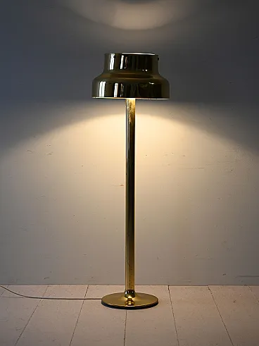 70s vintage ground lamp, designed by Anders Pehrson for Ateljé Lyktan. Brass structure with shaped diffuser. Model designed in the 70s by Anders Pehrson for Ateljé Lyktan, this ground lamp expresses the perfect balance between form and function. The structure entirely in brass gives elegance and brightness, while the shaped diffuser creates a soft and welcoming lighting. The solid and timeless design reflects the distinctive approach of the Swedish designer. Good condition. It could present signs of the time. To pleasure, pay attention to the photographs.