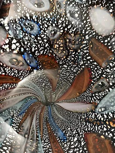 Made in Italy, 1960s. This ashtray / catchall is made in Murano glass. It is a "Tutti frutti" model. This is a vintage piece, therefore it might show slight traces of use, but it can be considered as in perfect original condition and ready to become a piece in a home. Measures: Diameter: 22.5 cm Height 7 cm. Order it now! We sell the best quality pieces and we offer an amazing service: if it's not during night time, we answer within 2 hours and we absolutely love to follow every step of the purchase and even after. As matter of fact we really appreciate our customers’ feedback and when we receive pictures of our pieces in their new homes. We assist you during the process and answer all your questions. In addition to this, we always review the pieces before shipping, so that you receive the goods at its very best. We provide the best possible quotes and professionally and carefully pack the items. Insurance is included. And if there is any issue, it is our mission to make so you don't have to worry: we will always be there for you to assist in any way possible.