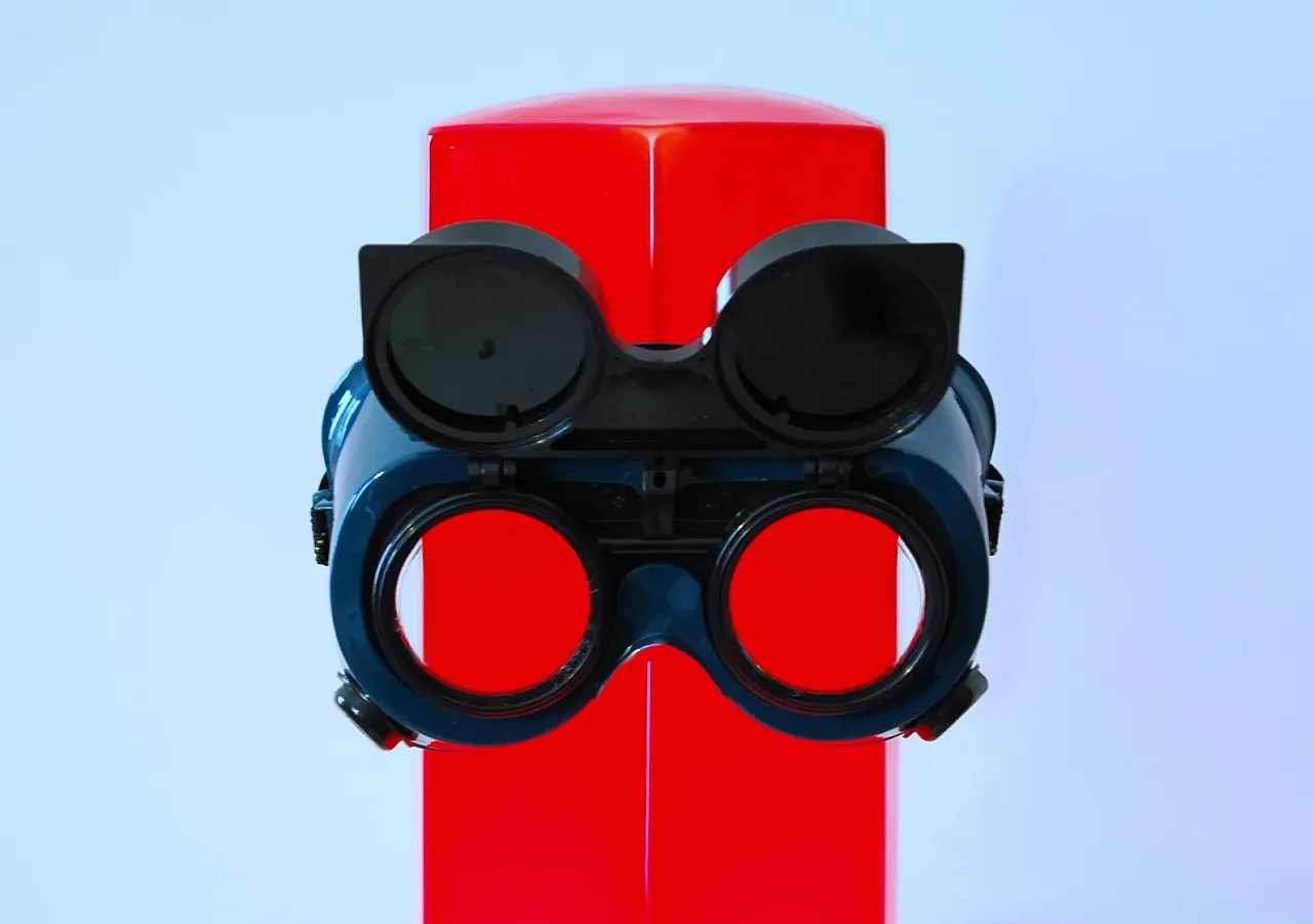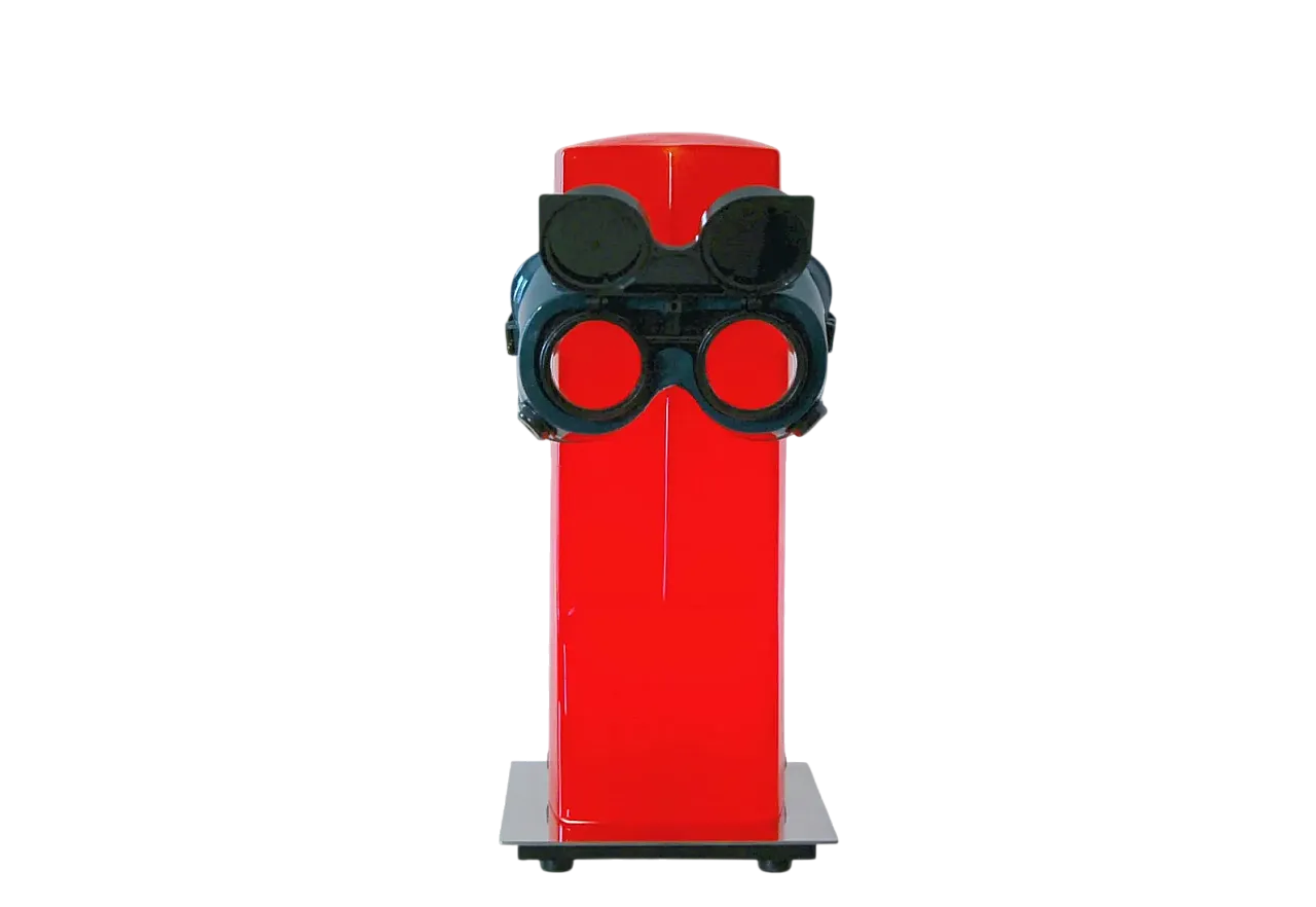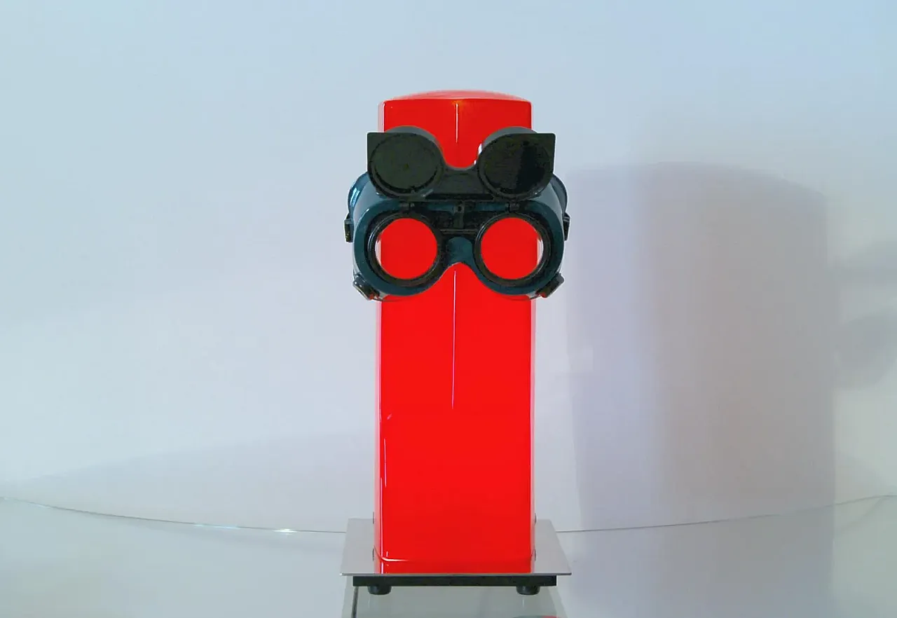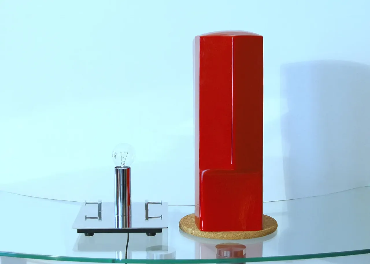 Luminous table lamp, made by Venini in 2003, in a limited edition in the 99 + 99 red and blue colors, the lamp is equipped with a dimmer for adjusting the luminous flux, the structure consists of a single body in chained glass. Complete with certificate.