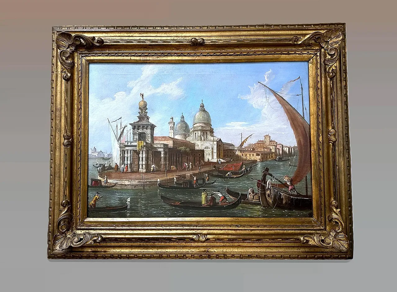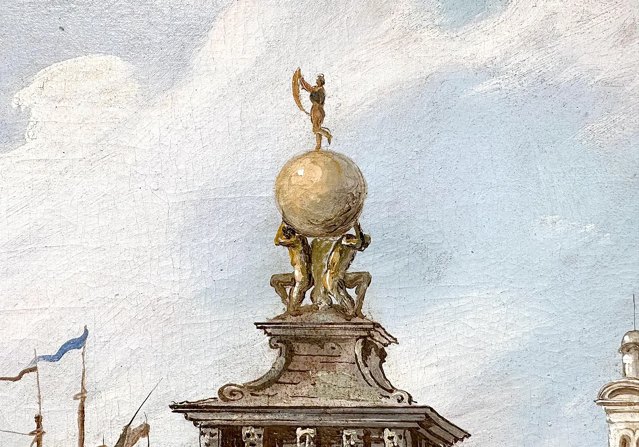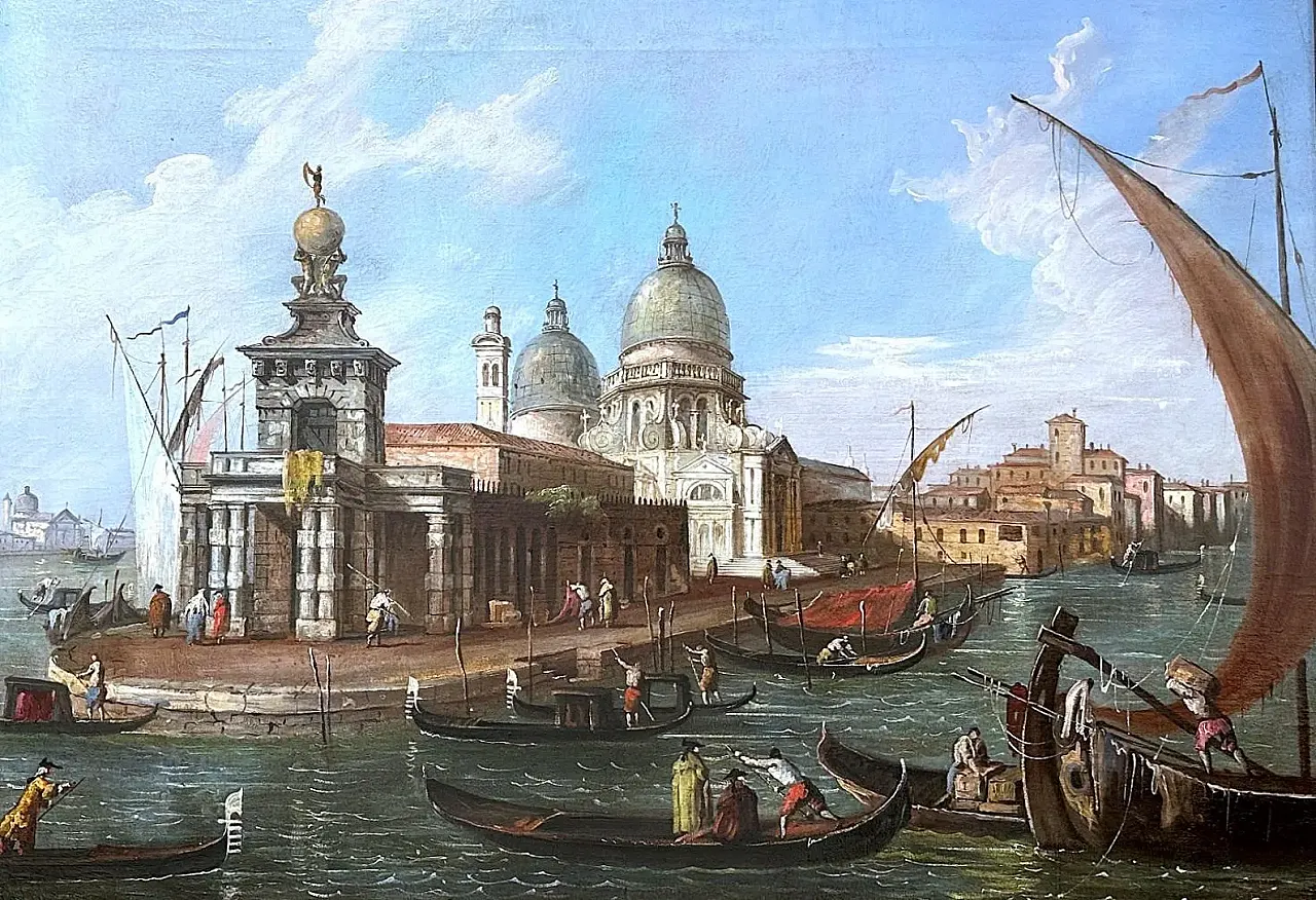 The extraordinary pictorial quality, evident both in the drafting of architecture and in the realization of the figures and boats, immediately brings us back to the famous Venetian seer Michele Marieschi (Venice 1710 - 1743)