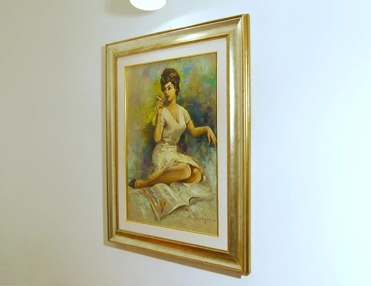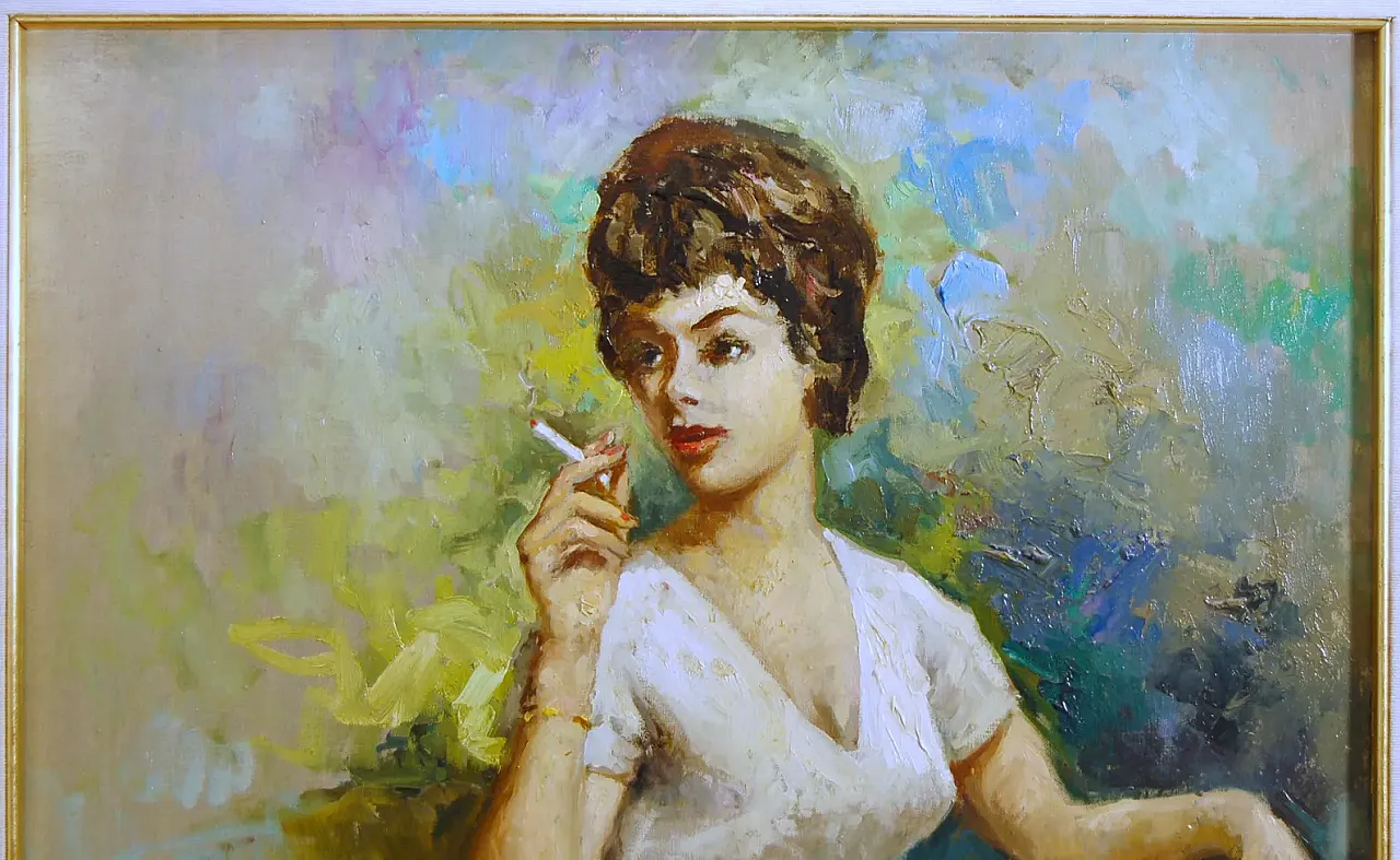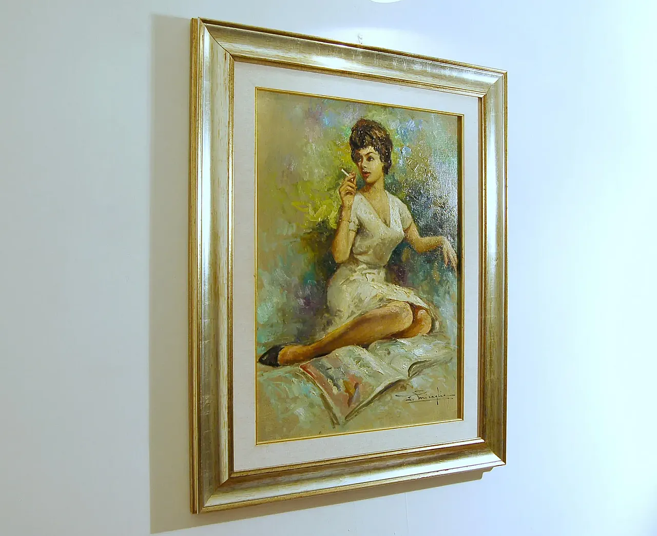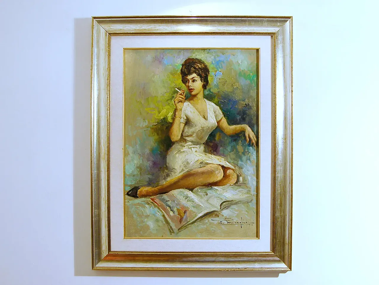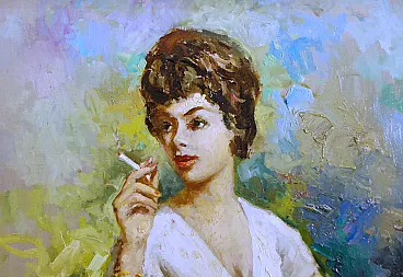 Girl smoking by Ermogene Miraglia, oil on canvas, 20th century