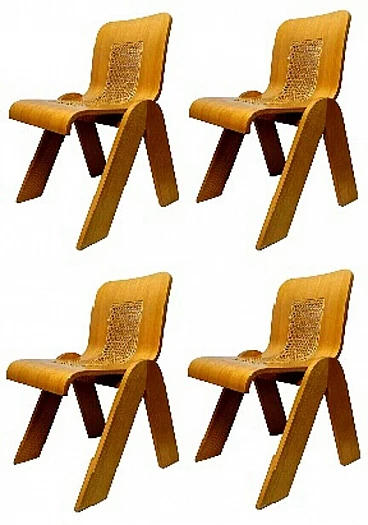 4 Curved plywood chairs by Gigi Sabadin for Stilwood, 70s