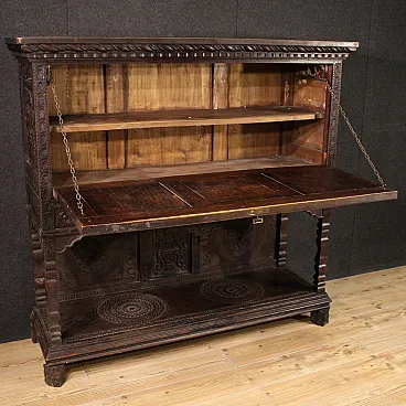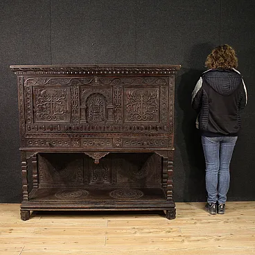 Great sideboard in carved dark wood, 20th century