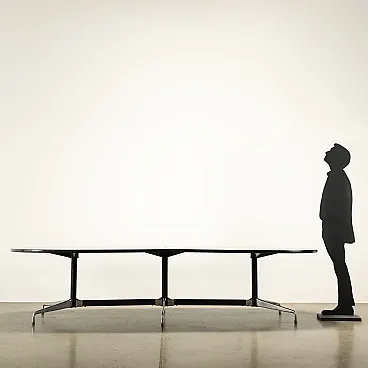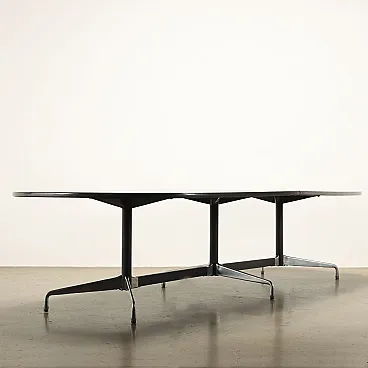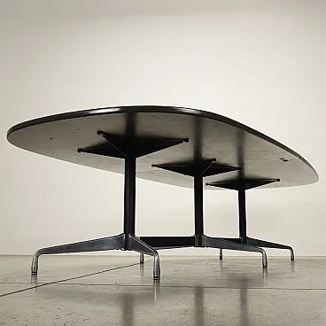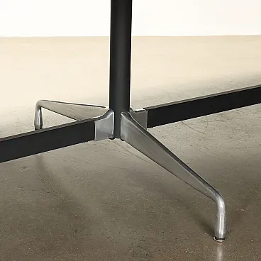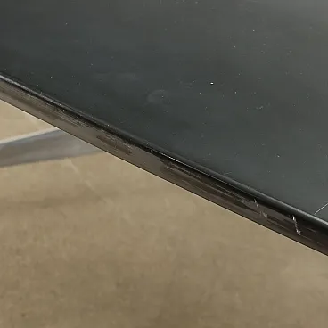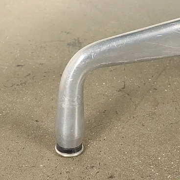 Table with enameled metal and aluminum base, lacquered wood top. In good condition