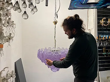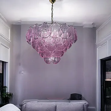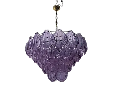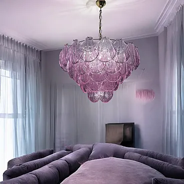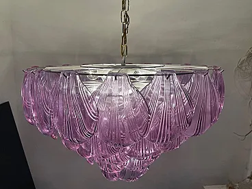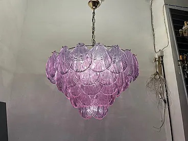 Large Lilac Shell Murano Glass Chandelier, 1970s