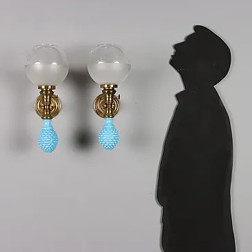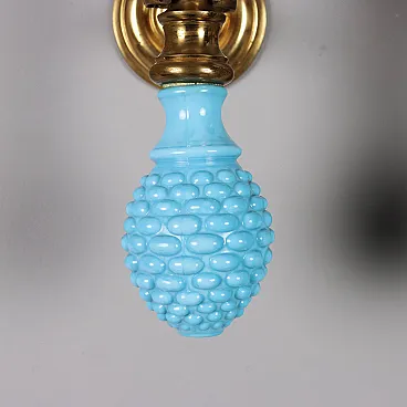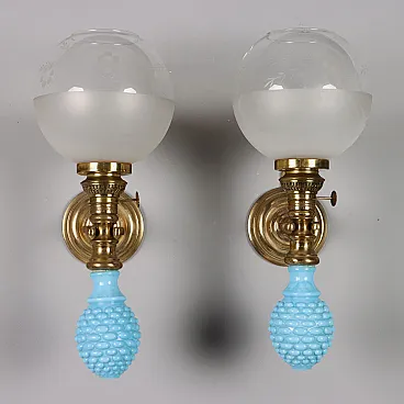 Pair of gilded bronze, glass and ceramic wall lamps, 20th century