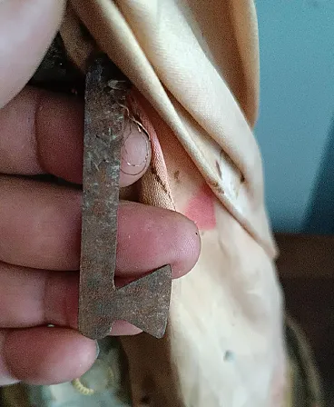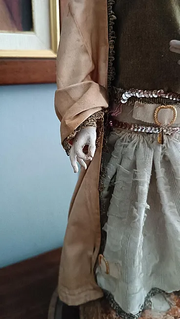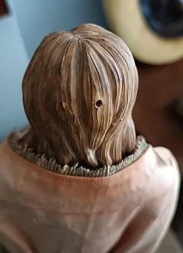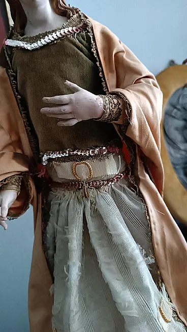 Sculpture under glass bell 19th century. Sculpture with head, feet and terracotta hands with glass eyes with original golden wood base, school of southern Italy 19th century. It is probably Sant'Agata as it brings an iron ax on the side, as seen in the photo, and probably carried a missing palm in the right hand.