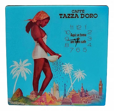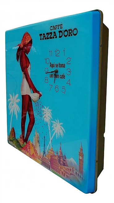 Bright advertising sign with clock of Caffè Tazza D'Oro Roma, 1970's