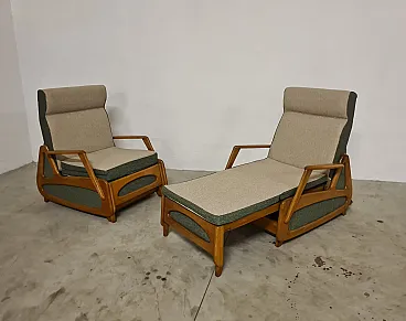 With a typically 50s design, these refined armchairs have a ash wood body and a two -tone and green two -tone cotton seat.