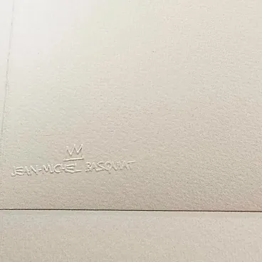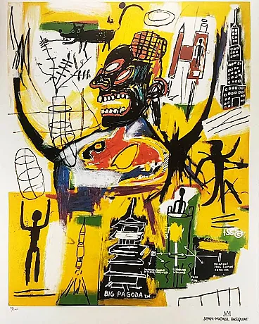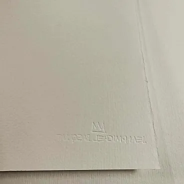 Limited series - number 210 of 300 (the numbers are signed in pencil). License: Jean-Michel Basquiat Foundation. Original stamps of the publisher (Jean-Michel Basquiat Foundation) impressed on the front and on the back, Author's signature: signed on slab. Holographic authentication stamp. Cotton paper. Excellent conditions. No sign of aging.