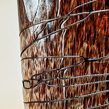 Jacketed vase in Murano glass with silver finishes, 1970s