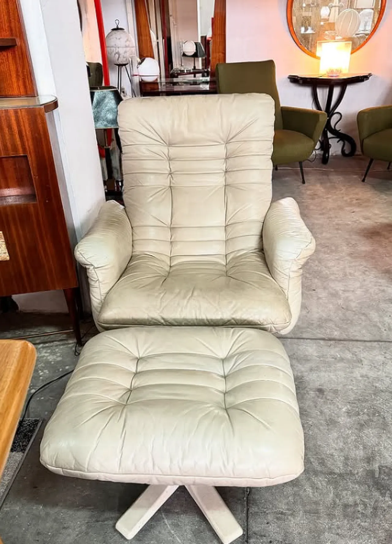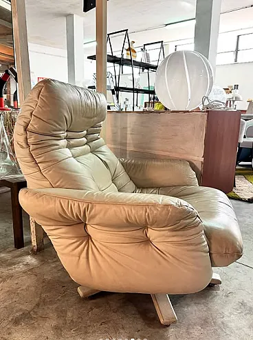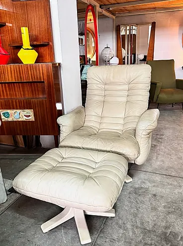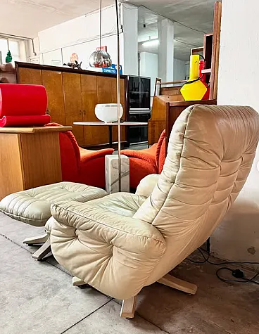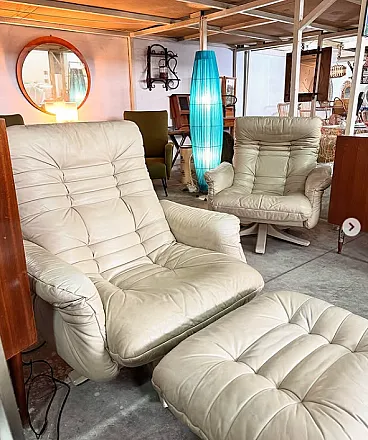 Pair of leather armchairs with footstools by Stega, 1990s