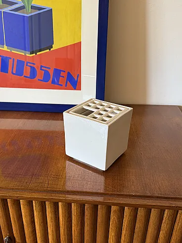 White Ikebana Ceramic Vase / Ashtray by Studio Opi, 70s