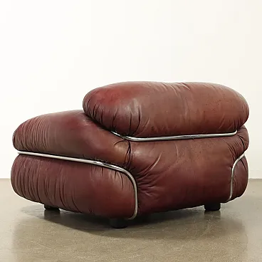 Iconic armchair by Gianfranco Frattini, with foam padding and fine original leather upholstery, chromed metal tubing.