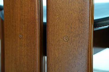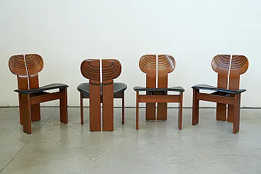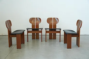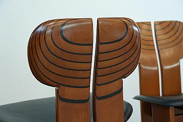 Afra & Tobia Scarpa 'Africa' Dining Chair - Walnut & Leather, 1975 Designed in 1975 by Italian duo Afra & Tobia Scarpa, the 'Africa' chair is a celebrated icon of Italian modernist design. Originally produced by Maxalto (B&B Italia) in Italy, this elegant dining chair features a sculptural solid walnut frame defined by bold, angular lines. Its high, gently curved back and wide, angled legs create an architectural silhouette that balances form and function. The seat is upholstered in supple leather, offering comfort and a sophisticated contrast to the warm walnut tones. Every detail of the 'Africa' chair reflects the Scarpas' meticulous craftsmanship. The rich walnut wood shows careful carving and finishing, while the leather seat is impeccably tailored. Subtle brass brackets at the rear leg connection add stability and a refined accent. Together, these elements embody the Scarpas' signature blend of elegant simplicity and attention to detail, making the chair as visually striking as it is comfortable. An authentic vintage example of 1970s Italian design, this Scarpa piece is both a practical dining chair and a sculptural accent in any room. Its clean lines and expert construction give it timeless appeal. The Africa chair remains in excellent condition and lends instant character to a high-end interior with its iconic modernist styling. Designer: Afra & Tobia Scarpa Year: 1975 Materials: Solid walnut wood frame; leather upholstered seat Style: Italian Modernist (Mid-Century design) Function: Versatile dining chair or occasional accent chair Dimensions: Height 79 cm (31.11 in) × Width 55 cm (21.66 in) × Depth 44 cm (17.33 in); Seat height 46 cm (18.11 in) Notable features: Distinctive sculptural silhouette with bold angular frame; exceptional Italian craftsmanship Condition: Vintage - excellent. Minor wear consistent with age, reflected in patina and finish. Provenance: Italy (original Maxalto production for B&B Italia). This original Scarpa design is a museum-quality collectible in both form and function.