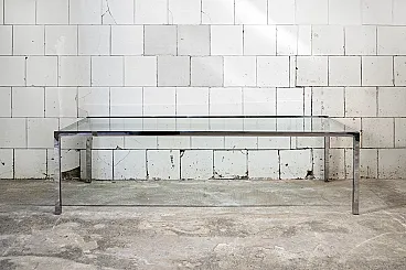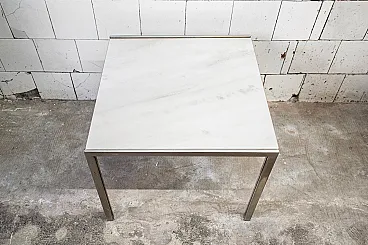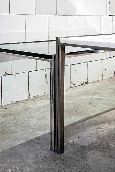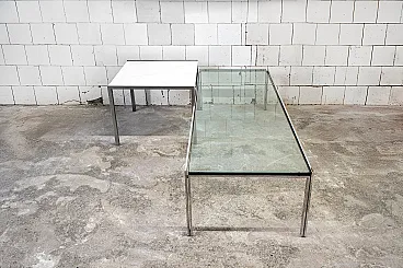 Coffee tables with chromed metal structure, glass and marble tops. Luar model Designer Ross Littell Producer ICF De Padova Year 1970 60x145x42 cm 60x60x50 cm