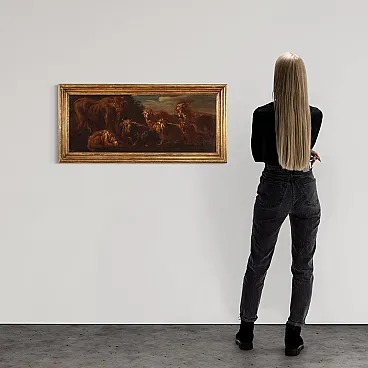 Rosa da Tivoli style,Landscape and animals, oil painting, 19th century