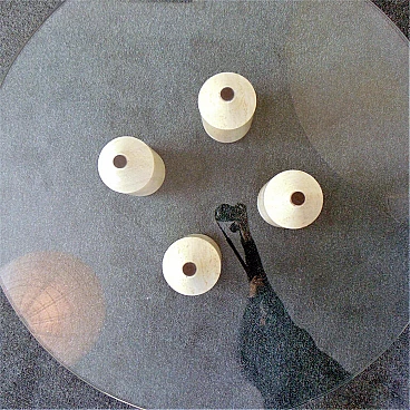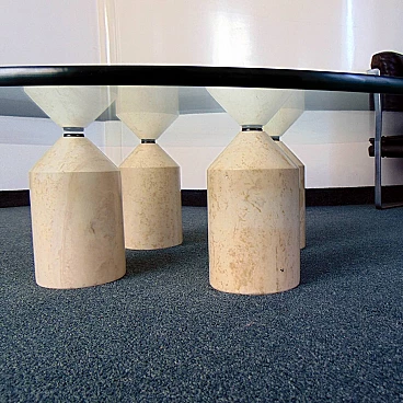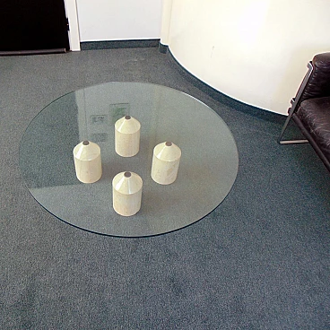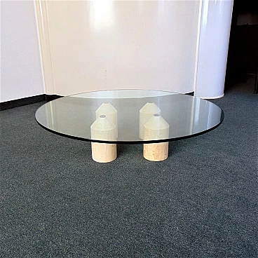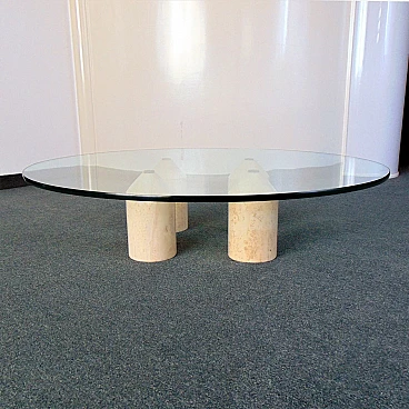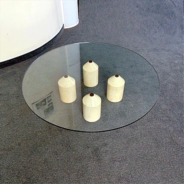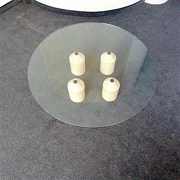 Coffee Table with 4 Pencil-Shaped Travertine Legs and Round Glass Top