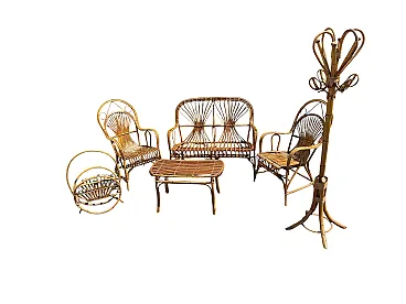 Item Name - Midcentury Modern Bamboo Rattan Sofa Set, 1960s, Set of 6