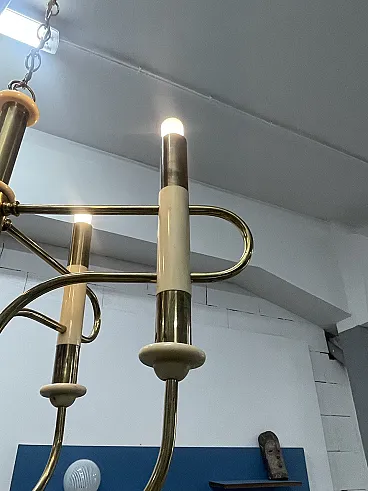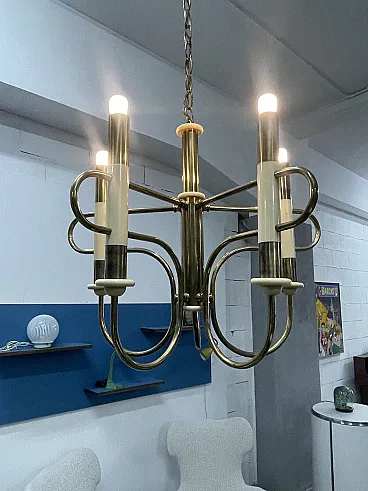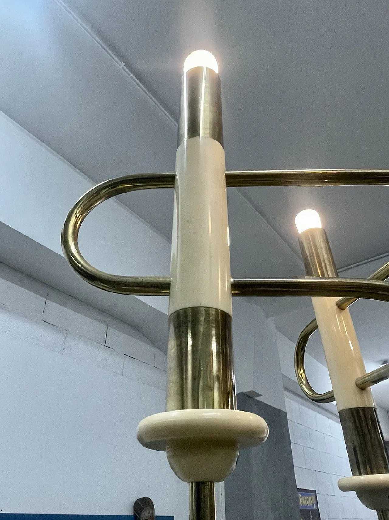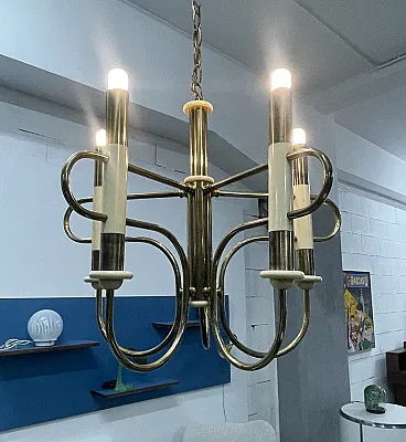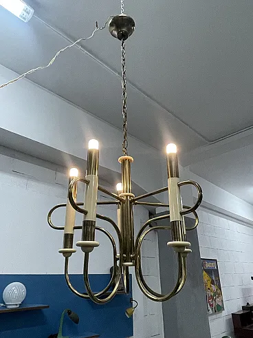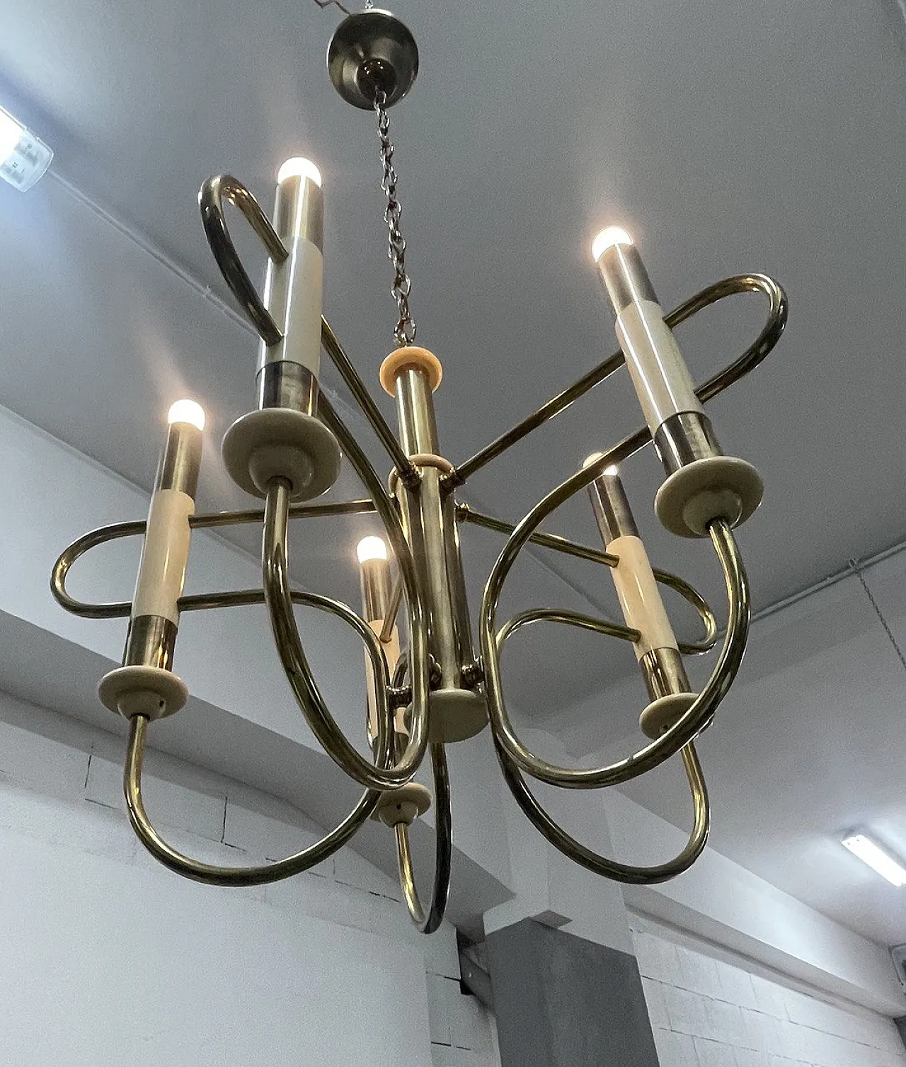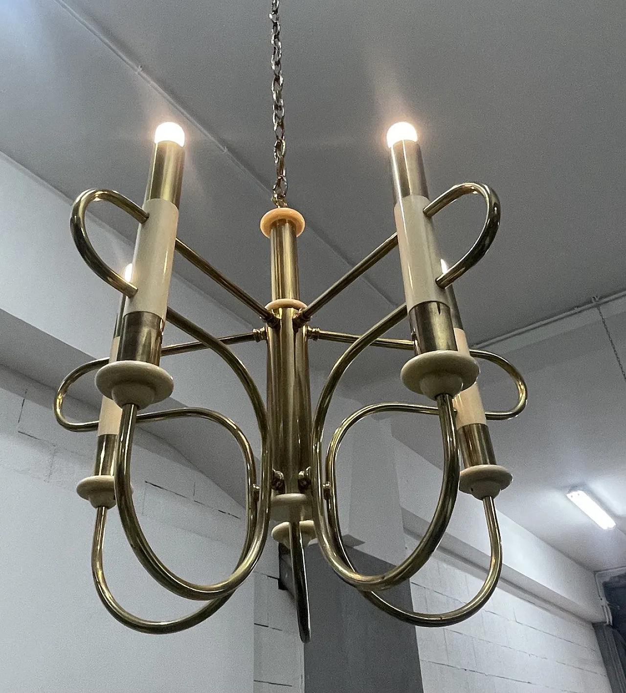 Sciolari 60s chandelier. Brass structure. Original electrical system. Mount five small -attack lamps. Dimensions: 110 x 50 cm