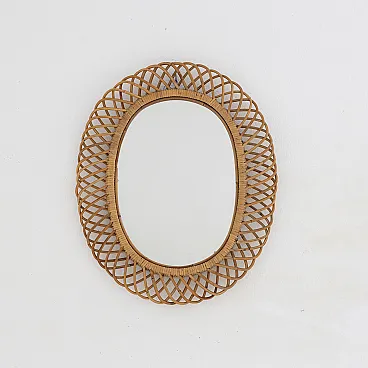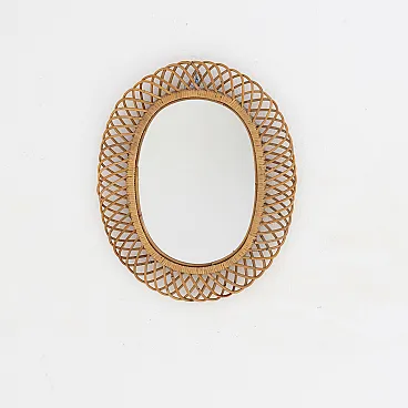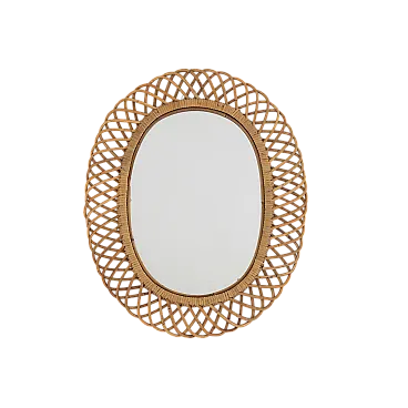 Delicious vintage oval mirror dating back to the 1950s, with intertwined frame in natural moon. An object with timeless charm, which recalls the aesthetic of organic and artisan design typical of the Italian post -war period. The manufacture of the mocking, handmade, creates a light and elegant decorative motif, perfect for giving heat and character to any environment.